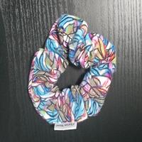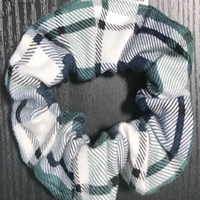 This full scrunchie is perfect for any statement individual. works well with thick hair as there is .25-inch-thick elastic. This fabric is a Cotton blend. warm cream with a red small rose bud.